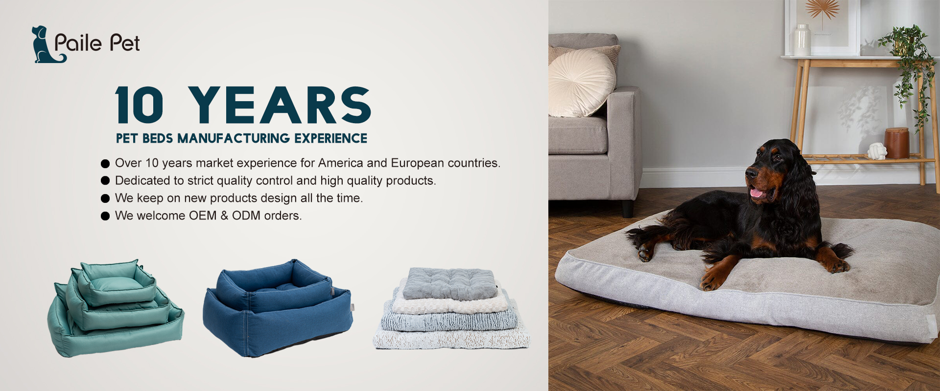 Hangzhou Paile Pet Products Co.,Ltd, is a professional corporation engaged in the development, designing, produce high quality pet beds and pet clothes supplier. Our factory was established in 2014, with 10 years experience in pet beds production. We are loacated in Chongfu Town, Tongxiang City, which is very closed with Shanghai City. Our products have been exported to European countries, America for 10 years.